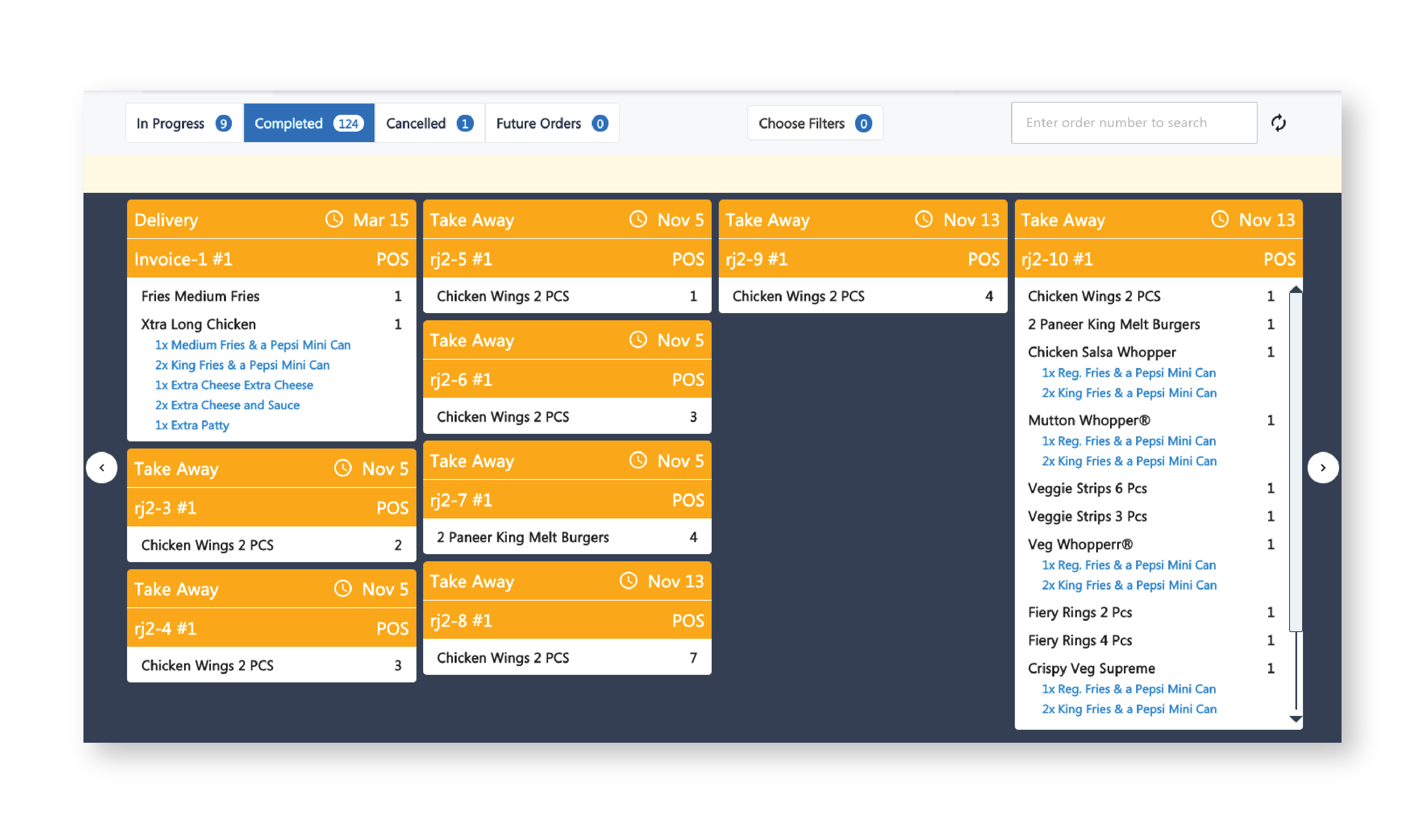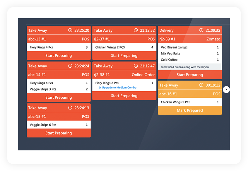 No need to manually forward KOTs, benefit through quick order relays to the kitchen backend and POS .